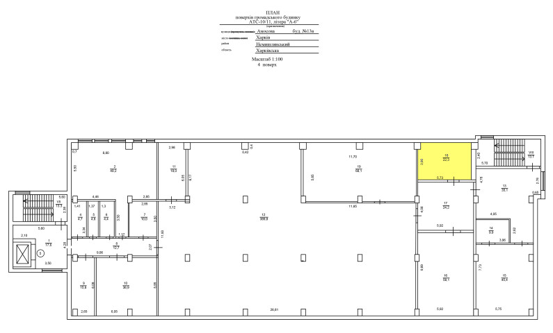 м.Харків, вул. Амосова,13-В ; Оренда – приміщення четвертого поверху площею 22,3 кв.м. (П)