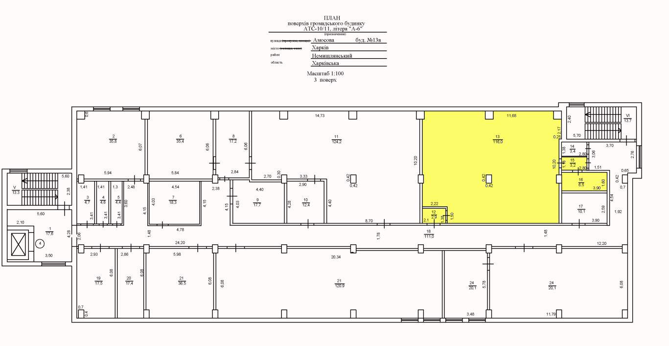 м. Харків, вул. Амосова,13-в. Оренда – приміщення 3-го поверху площею 128,6 кв.м (В)