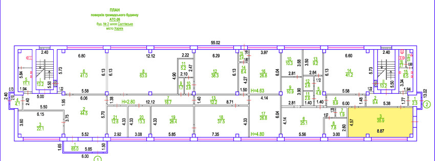 м.Харків, Салтівське шосе, 2. Оренда – приміщення 1-го поверху, площею 35,9 кв.м (В)
