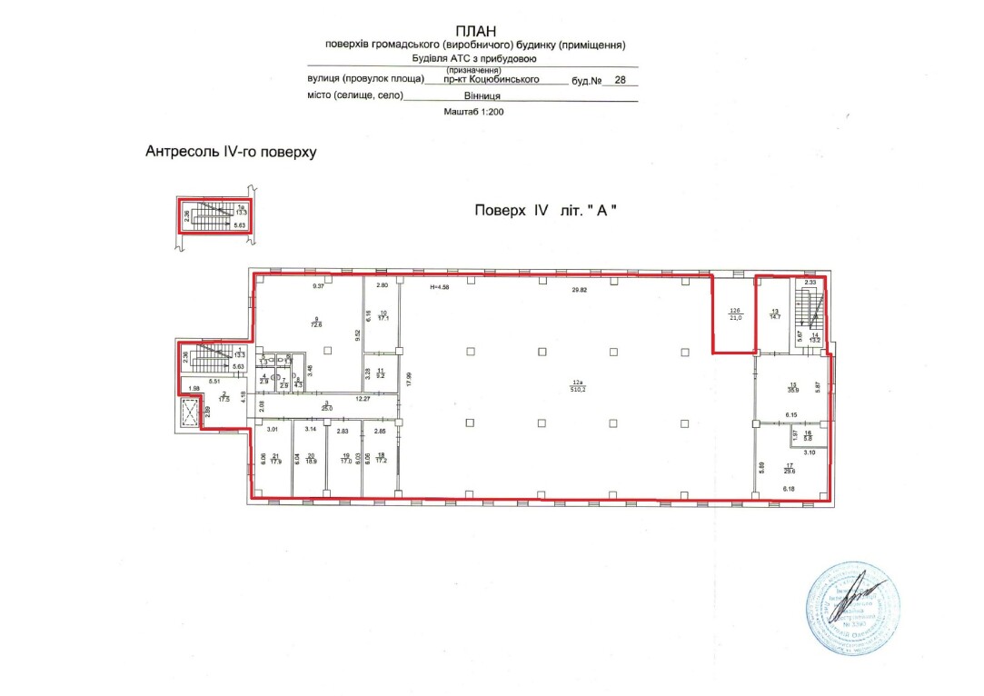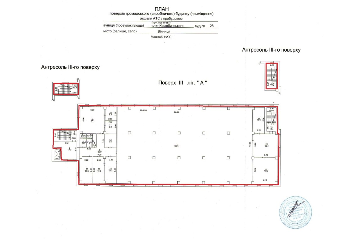 ДОВГОСТРОКОВА ОРЕНДА! Вінницька обл., м. Вінниця, пр-т. Коцюбинського, 28; Оренда – приміщення 3-го та 4-го поверхів площею 1770,10 кв.м. (В)