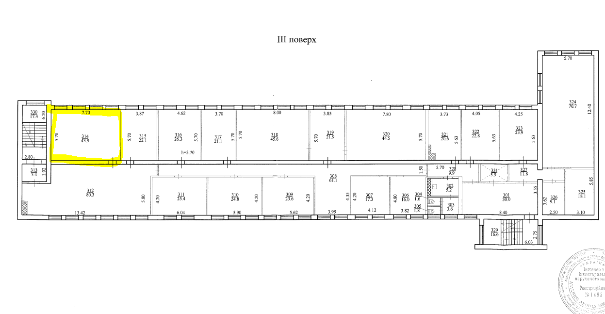 Дніпропетровська обл., м. Кам’янське, просп. Героїв АТО, 1. Оренда – приміщення 3-го поверху загальною площею 43,9 кв.м (В)