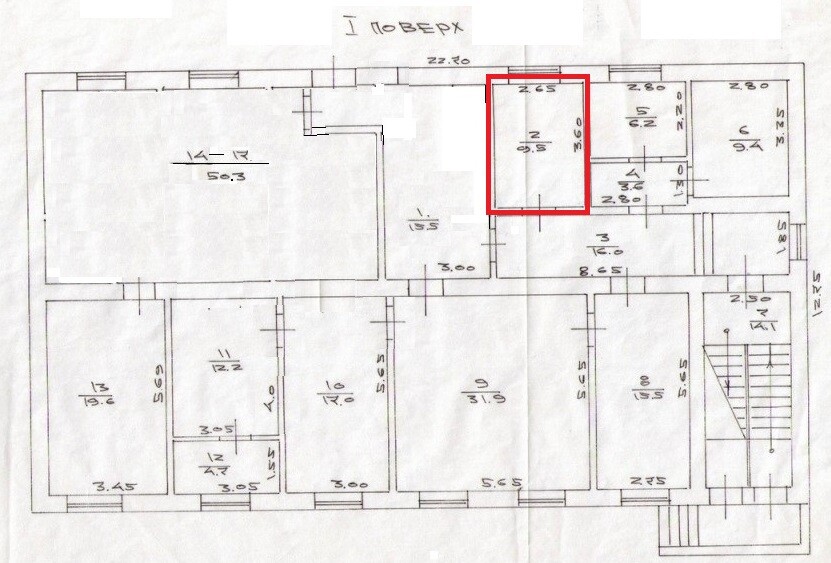 Одеська обл., Подільський р-н, м. Кодима, вул. Соборна, 111. Оренда – приміщення 1-го поверху площею 9,50 кв.м (В)