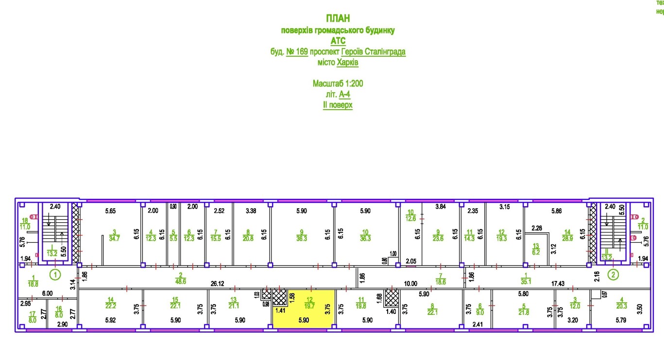 м. Харків, пр-т Г. Сталінграду, 169; Оренда – приміщення 2-го поверху площею 19,7 кв.м. (В)
