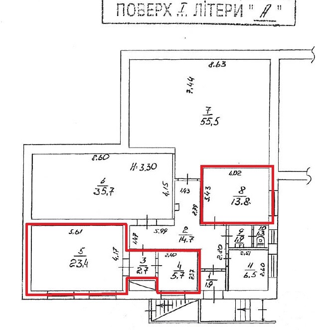 Пропонуються до оренди приміщення 1-го поверху та підвалу, площею 66,30 м.кв.