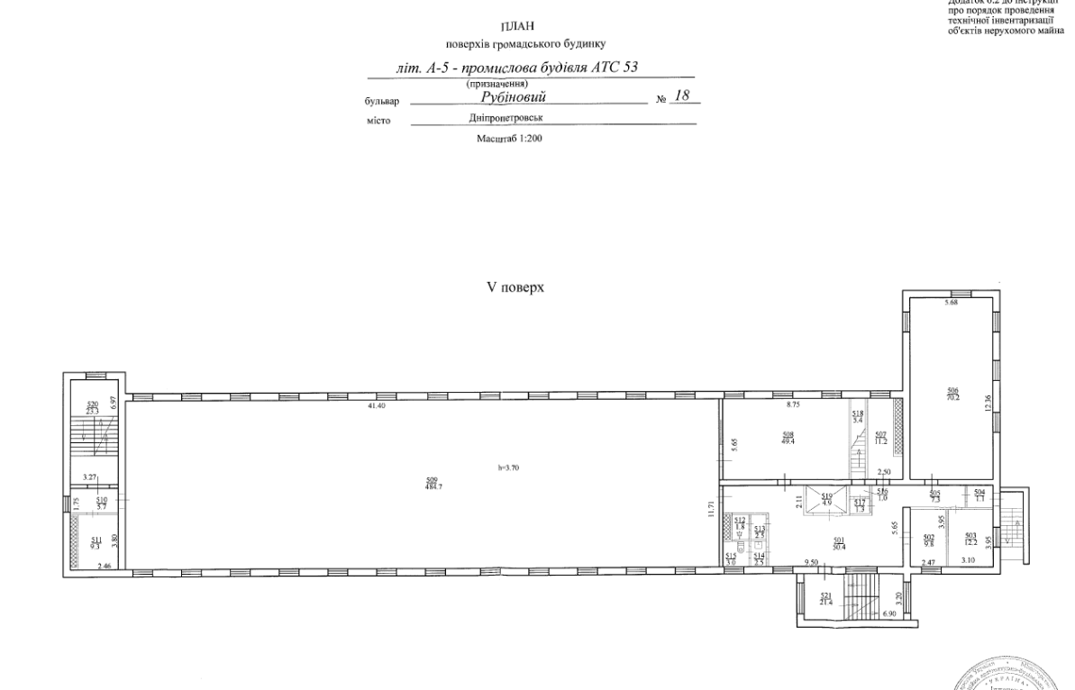 Пропонується до оренди будівля площею 3932,40 кв.м, що знаходиться в Новокодацькому районі міста Дніпра. Зручна транспортна розв’язка та інфраструктура. Стан – потребує ремонту, підходить для офісу, cкладу, виробництва Характеристики: кількість поверхів – 5; Загальна площа будівлі – 4322,00 кв. м.; газопостачання, електропостачання, водопостачання, каналізаційна мережа; земельна ділянка – 0,4169 га