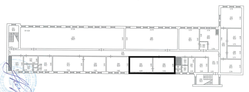 Пропонується до оренди приміщення 2-го поверху загальною площею 46,40 кв.м (прим. №№ 208,226). Розташування - будівля знаходиться в Соборному районі міста. Поруч знаходяться відділення банку, супермаркети, лікарня, зупинка громадського транспорту, високий автомобільний і пішохідний потоки. Стан приміщення задовільний. Вхід в приміщення спільний. Зручна транспортна розв’язка та інфраструктура.