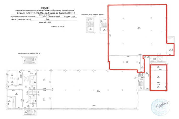 Пропонуються до оренди приміщення 4-го поверху, площею – 772,40 м2