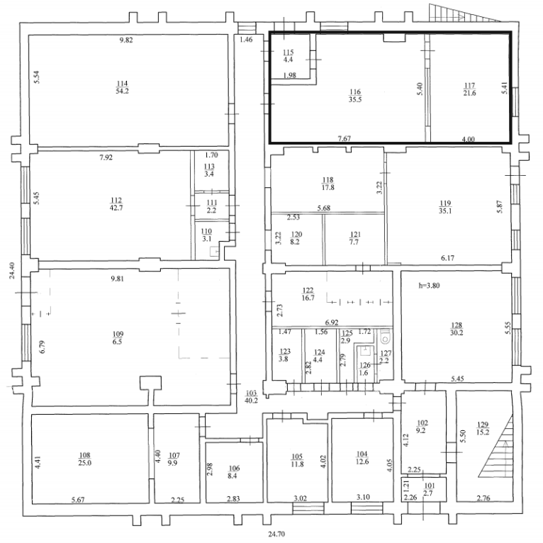 Площа запропонована до оренди – 61,50 кв.м