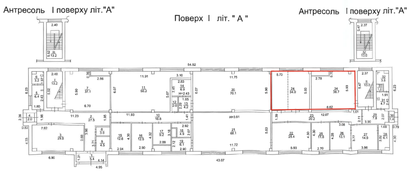 • площа запропонована до оренди – 70,70 кв.м;