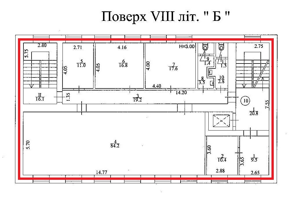 Одеська обл., м. Одеса, вул. Катерининська, 37. Оренда – приміщення 8-го, 9-го поверхів загальною площею 335,60 кв.м (В)