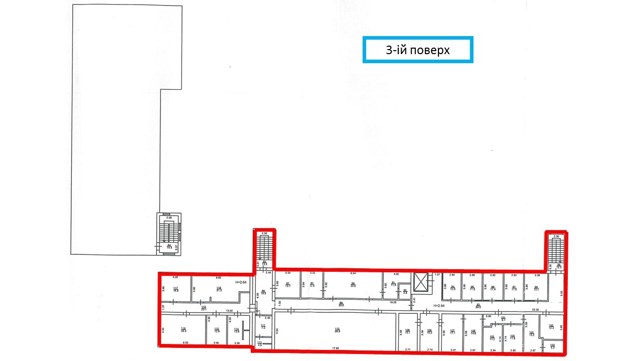 Вінницька обл., Гайсинський р-н., м. Тростянець, вул. Соборна, 47. Оренда – приміщення 3 поверху площею 66,20 кв.м. (В)