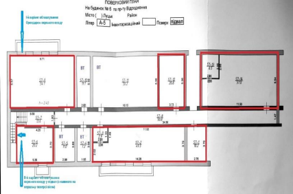 Волинська обл., м. Луцьк, пр-т Відродження, 6. Оренда – приміщення підвалу 221,00 кв.м та 1-го поверху 543,20 кв.м загальною площею 764,20 кв.м. (В)