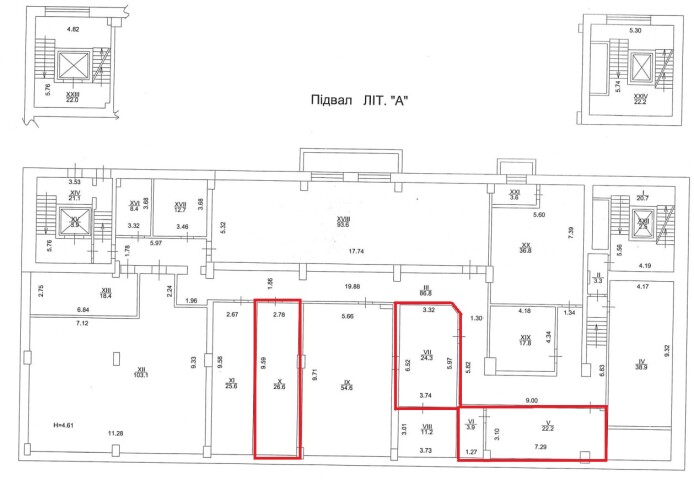 Пропонуються до оренди приміщення підвалу, площею 77,0 кв.м. Стан приміщень задовільний.