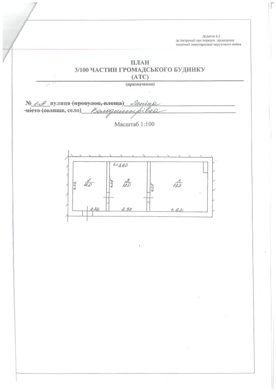 Кіровоградська обл., Кропивницький (Знам`янський) р-н, с. Володимирівка, вул. Дружби, 1а; Оренда – будівля площею 41,70 кв.м.(В)