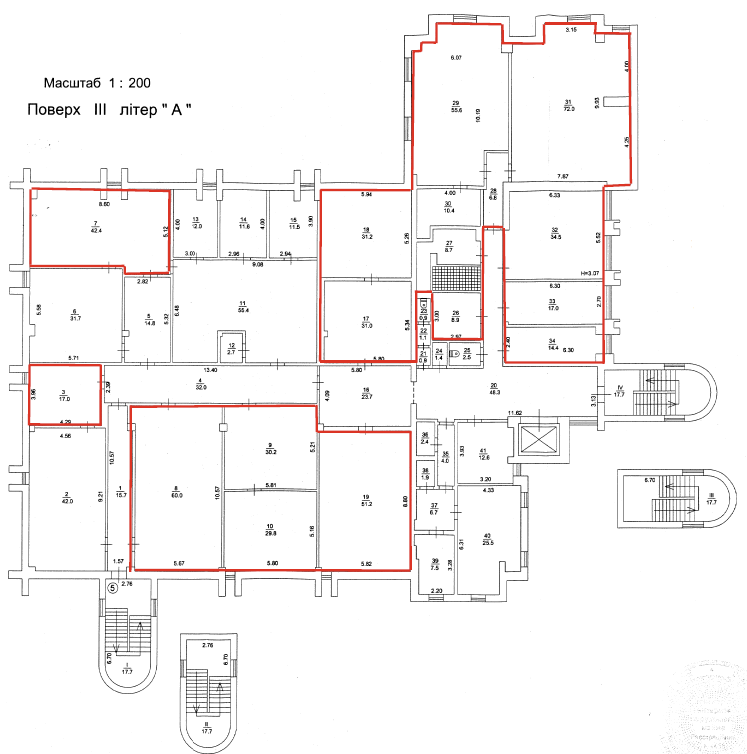 м. Київ, вул. Джона Маккейна, 40, літ. «А» (Печерський р-н). Оренда – група приміщень на 3-му поверсі, площею 62,80 кв. м. (В)