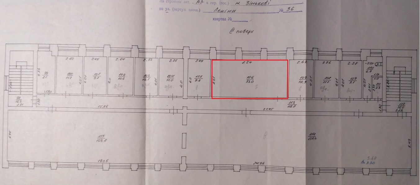 Полтавська обл., м. Зіньків, вулиця Воздвиженська, 36. Оренда – приміщення 3-го поверху площею 33,00 кв.м (В)
