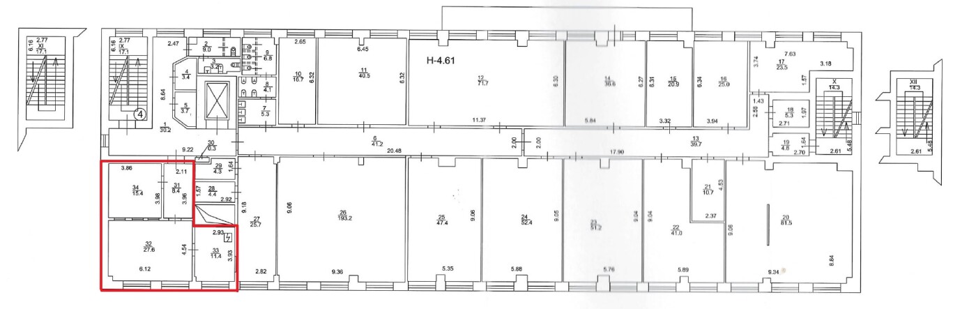 До оренди пропонується група приміщень на 3-му поверсі, площею 62,80 кв. м. Будівля знаходиться в Печерському районі міста