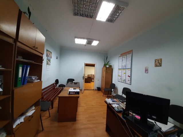 Пропонуються до оренди приміщення 2-го поверху адмінбудівлі площею 40,30 кв.м, що можуть бути використані під офіс, навчальний клас, діагностичний кабінет, майстерню тощо. Вікна виходять на фасадну та бічну сторони будівлі. Вхід – загальний (зі сторони внутрішнього двору). Будівля знаходиться у центральній частині міста, поряд – проїжджа частина. Добре розвинена інфраструктура, середні пішохідні та автомобільні потоки. Характеристики: кількість поверхів – 3; загальна площа – 1320,10 кв.м площа, запропонована до оренди – 40,30 кв.м; опалення-газовий котел; водопостачання, водовідведення – централізованеі; земельна ділянка – 0,2399 га (договір оренди)