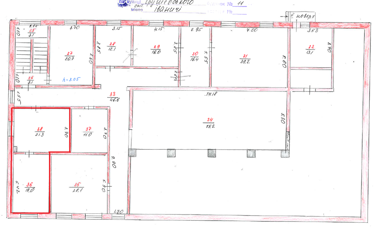 Волинська обл., Володимир-Волинського р-н, смт. Іваничі, вул. Грушевського, 11. Оренда – приміщення 2-го поверху адмінбудівлі площею 40,30 кв.м (В)