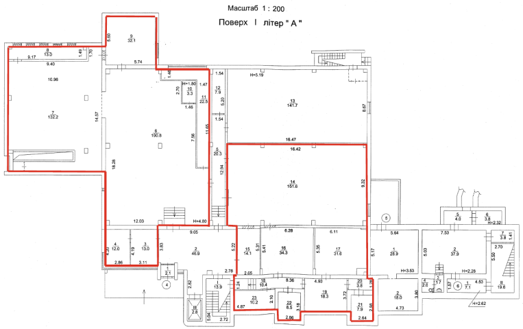 • Площа пропонована до оренди – 709,60 кв.м.;