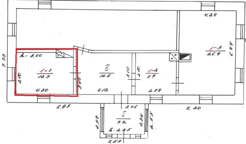 • площа запропонована до оренди 12,90 кв.м.;