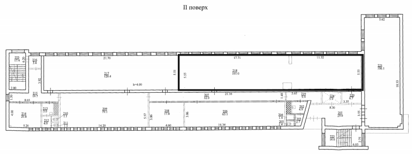 Пропонується до оренди приміщення 2-го поверху площею 161,0 кв.м (прим.№218). Будівля в центрі міста. Поруч знаходяться об’єкти соціальної інфраструктури: відділення банку, магазини, школи тощо. Стан приміщення добрий, підходить для танцювальної або спортивної студії, ідеальне місце під розвиток будь-якого бізнесу. Зручна транспортна розв’язка та інфраструктура.