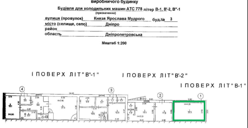 Пропонується до оренди приміщення з окремим входом 1-го поверху будівлі для холодильних машин літ В-1 площею 20,3 кв.м. Розташування: будівля знаходиться в Центральному районі міста. Поруч знаходяться об’єкти соціальної інфраструктури, зупинка міського транспорту, високий автомобільний і пішохідний потоки. Стан приміщення – задовільний, підходить для будь-якого бізнесу. Можливість передачі приміщення в суборенду.