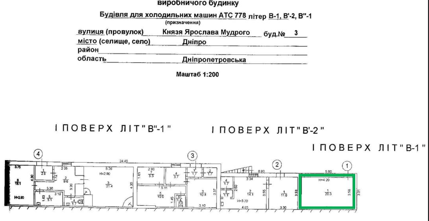 Дніпропетровська обл., м. Дніпро, вул. Князя Ярослава Мудрого, 3. Оренда – приміщення 1 поверху площею 20,3 кв.м.(В)