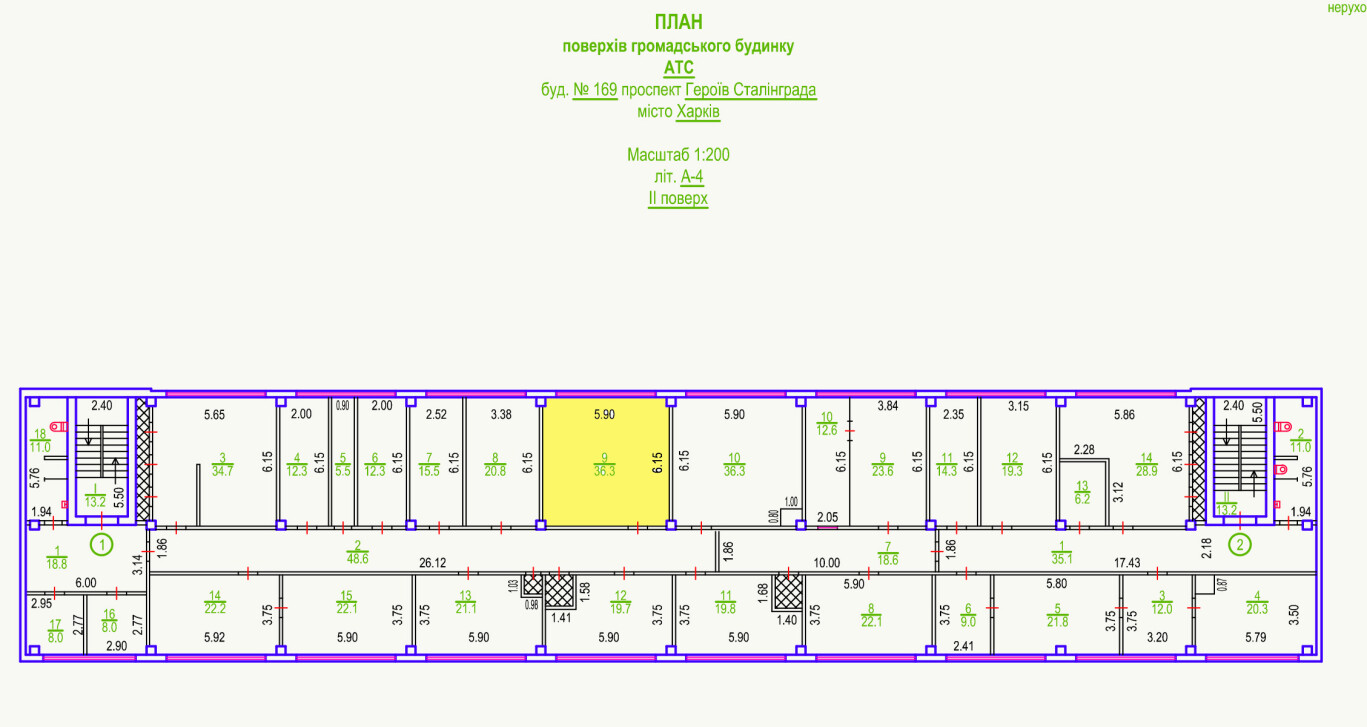 м. Харків, пр-т Байрона,169. Оренда – приміщення другого поверху площею 36,3 кв.м (В)