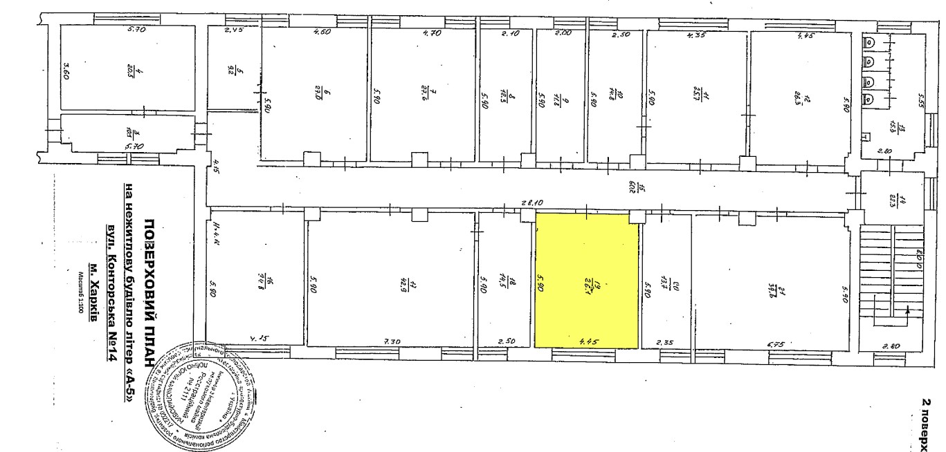 м. Харків, вул.Конторська,14 Оренда – приміщення другого поверху площею 26,1 кв.м (В)