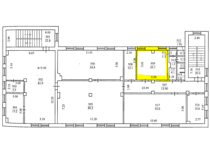 Дніпропетровська обл., м. Кам’янське, просп. Свободи, 44. Оренда – приміщення 5-го поверху загальною площею 26,10 кв.м (В)