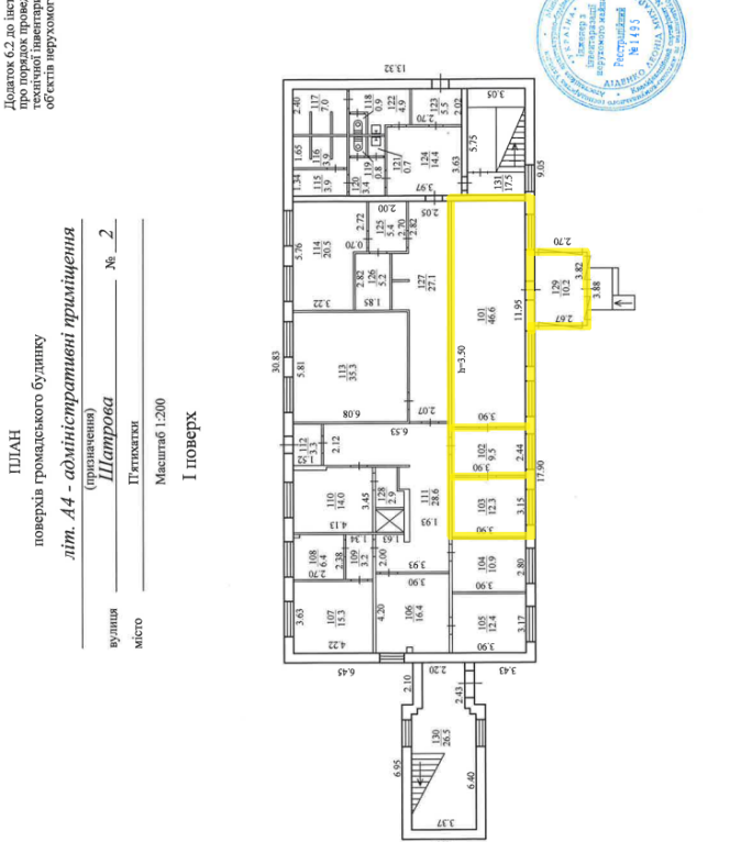 Дніпропетровська обл., м. П’ятихатки, вул. Шатрова, 2. Оренда – приміщення 1-го поверху загальною площею 78,60 кв.м (В)
