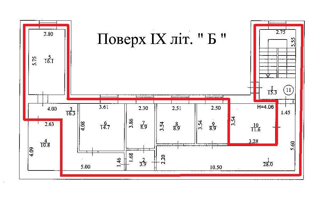 Одеська обл., м. Одеса, вул. Катерининська, 37. Оренда – приміщення 8-го, 9-го поверхів загальною площею 335,60 кв.м (В)