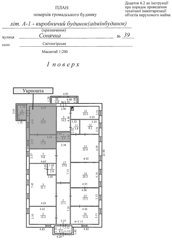 потребує ремонту. Частина приміщень адмінбудівлі орендує Укрпошта (42.1 кв.м)
