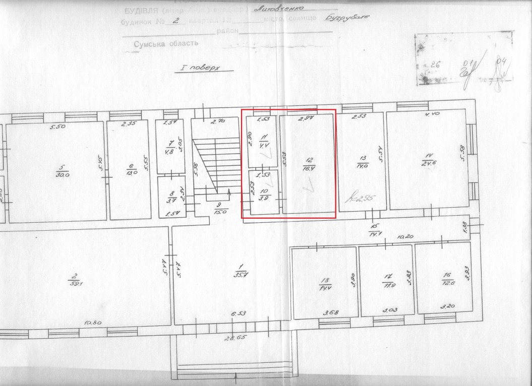 Сумська обл., Охтирський р-н, с. Бугрувате, вул. Литовченка, буд. 3. Оренда – нежитлове приміщення площею 24,70 кв. м. (В)