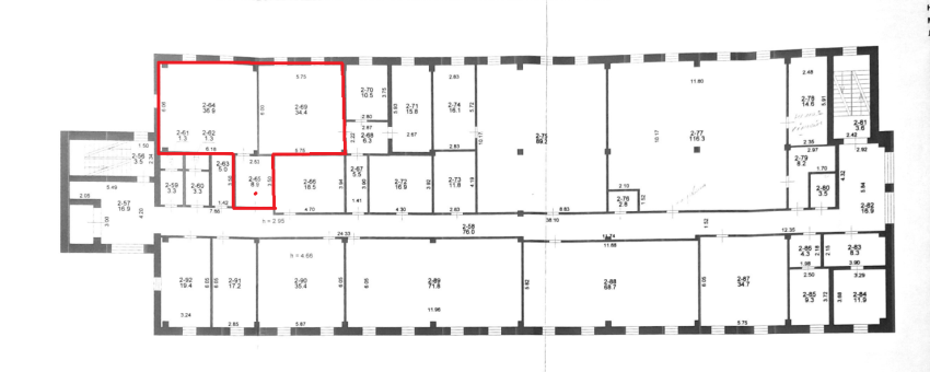Пропонується до оренди приміщення 3-го поверху площею 80,20 кв.м, що може бути використане під спортивний або танцювальний зал, навчальні класи, майстерню тощо. Вхід – з внутрішньої сторони будівлі. Будівля знаходиться в прицентральній зоні міста. Поряд – Укрпошта. Зручна транспортна розв’язка.