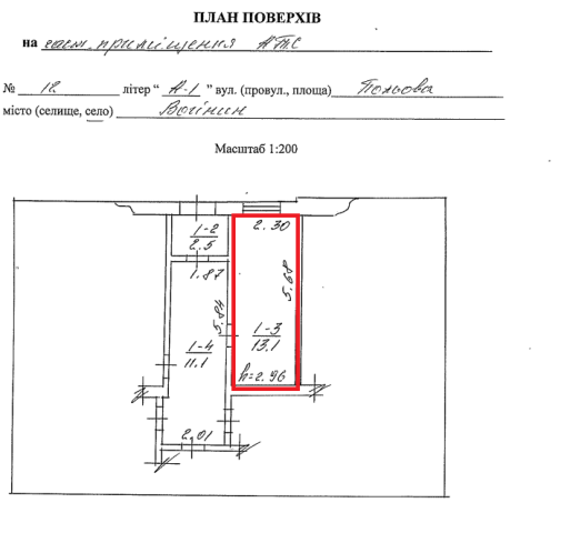 Волинська обл., Володимирський р-н, с. Войнин, вул. Польова, 12. Оренда – приміщення 1-го поверху площею 13,1 кв.м (В)