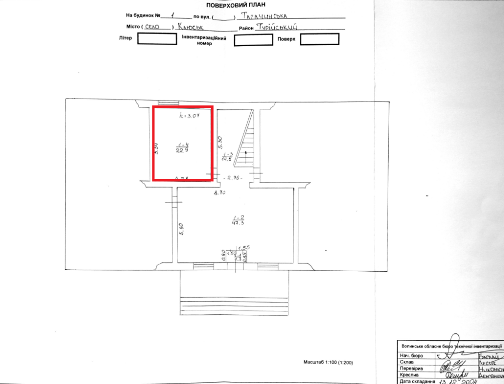 Волинська обл., Ковельський р-н, с. Клюськ, вул. Тагачинська, 1. Оренда – приміщення 1-го поверху площею 22,90 кв.м (В)