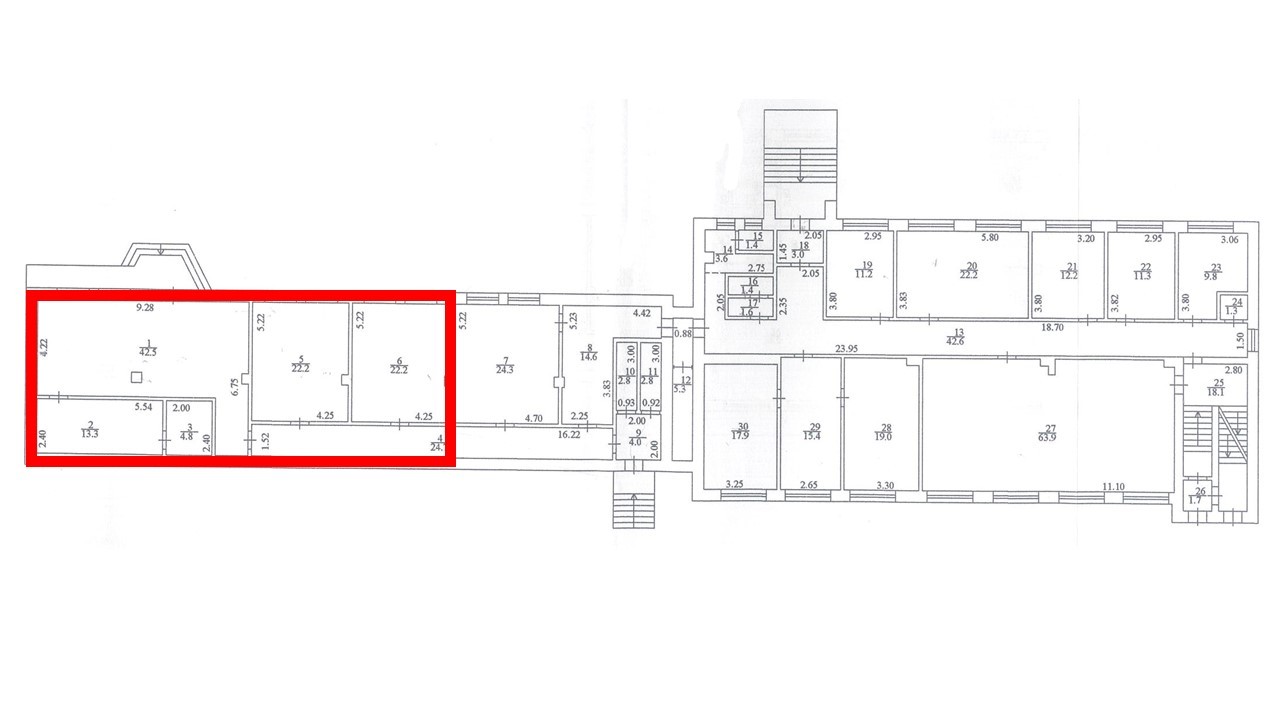 Площа запропонована до оренди – 117,90 кв.м.