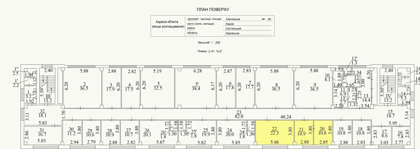 м. Харків, пр-т Ювілейний, 66. Оренда – група приміщень другого поверху площею 44,0 кв.м. (В)