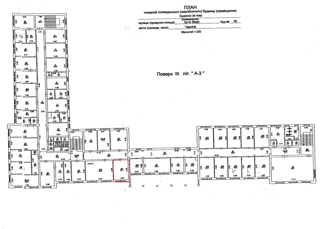Чернігівська обл., м. Чернігів, проспект Миру, 28. Оренда – офісне приміщення 3-го поверху площею 21,70 кв.м. (В)