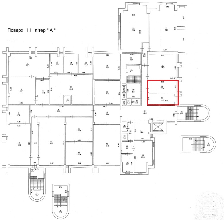 м. Київ, вул. Ореста Васкула, 27 (Святошинський р-н). Оренда – група приміщень на 3-му поверсі, загальною площею – 31,40 м. кв. (В)
