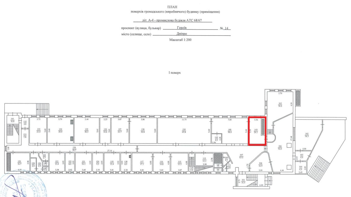 Дніпропетровська обл., м. Дніпро, проспект Героїв, 14. Оренда – приміщення 1-го поверху загальною площею 20,10 кв.м. (В)