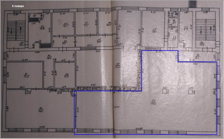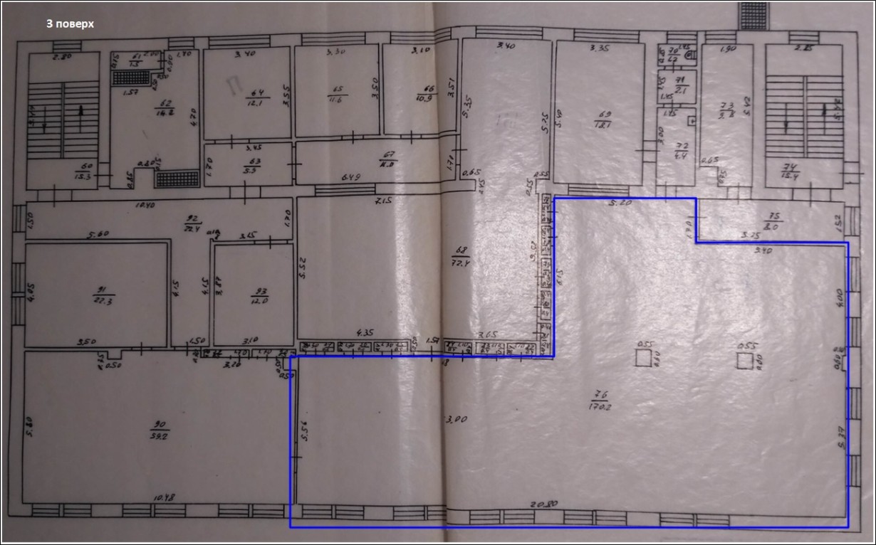 Пропонується до оренди приміщення 3-го поверху, загальною площею 170,20 кв.м. Приміщення розташовані у центральній частині
