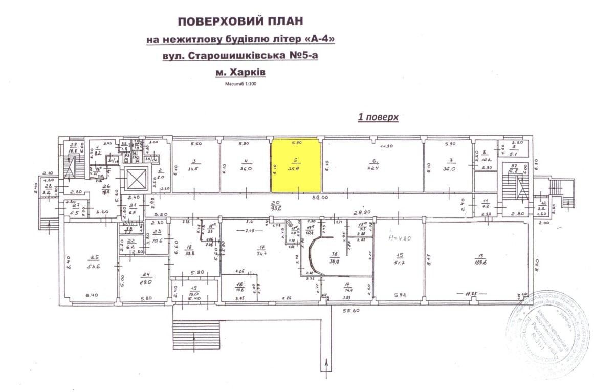 Харківська обл., м. Харків, вул. Старошишківська, 5-А. Оренда – приміщення на 1-му поверсі площею 35,90 кв.м. (В)