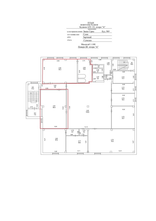 Сумська обл., м. Суми, вул. Івана Сірка, буд. 9. Оренда – частина 3-го поверху нежитлової будівлі площею 134,30 кв. м. (В)