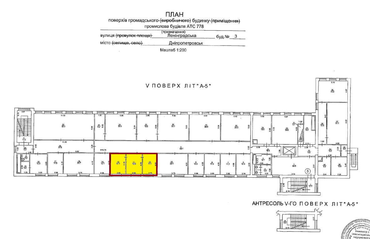 Дніпропетровська обл., м. Дніпро, вул. Князя Ярослава Мудрого, 3. Оренда – приміщення 5-го поверху площею 34,80 кв.м.(В)